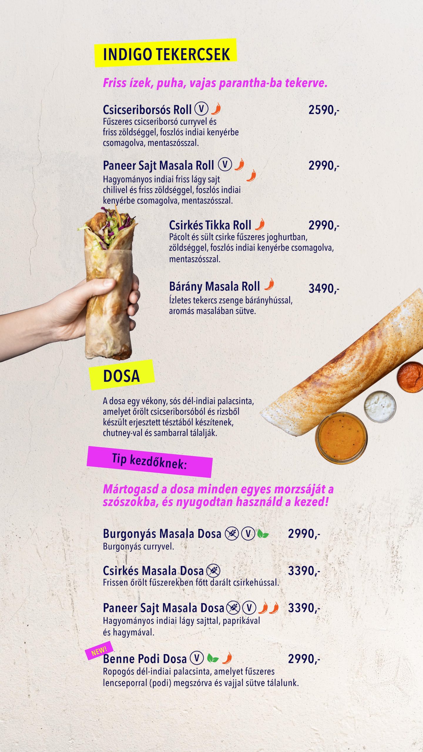 Az Indigo név Budapesten már közel 20 éve egyet jelent a tradicionális indiai konyhával, a mindennapokból azonban eddig hiányzott az indiai street food. Az Indigo Express egy fast casual étterem, ahol a gondosan előkészített, autentikus, mégis friss és lendületes ételeket gyorsan tálaljuk – hogy a sietős hétköznapokba is beleférjen egy kis India.